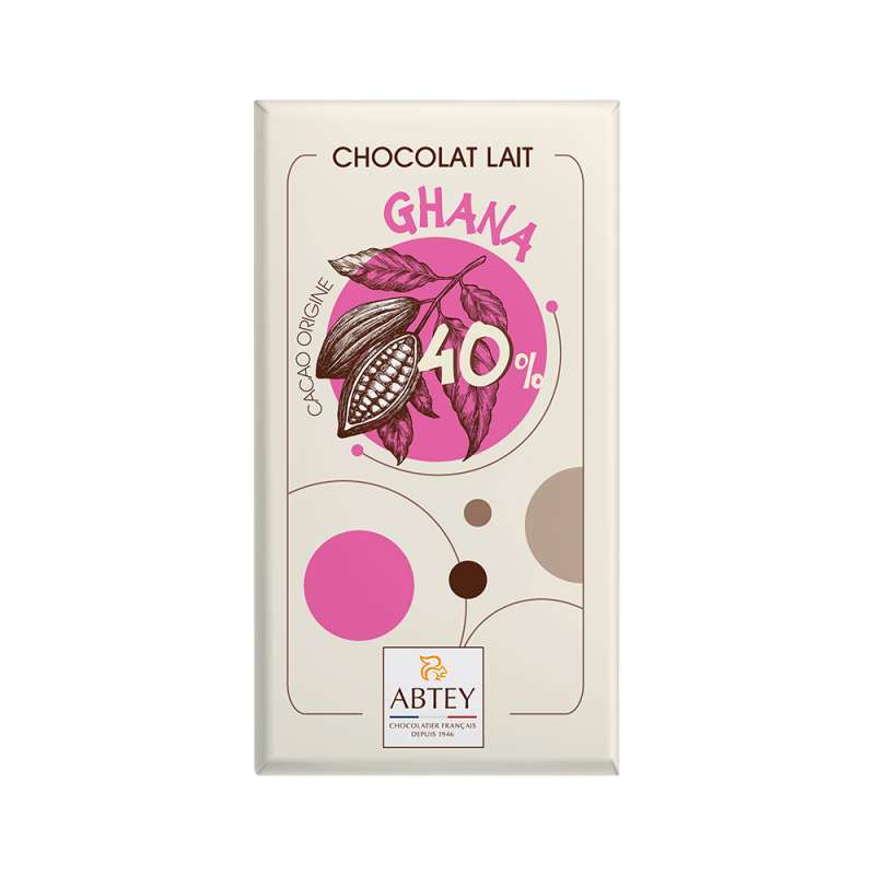 Ingrédients : sucre, beurre de cacao, lait entier en poudre, pâte de cacao origine Ghana, émulsifiant : lécithine de soja, vanille naturelle en poudre. Cacao : 40% min.