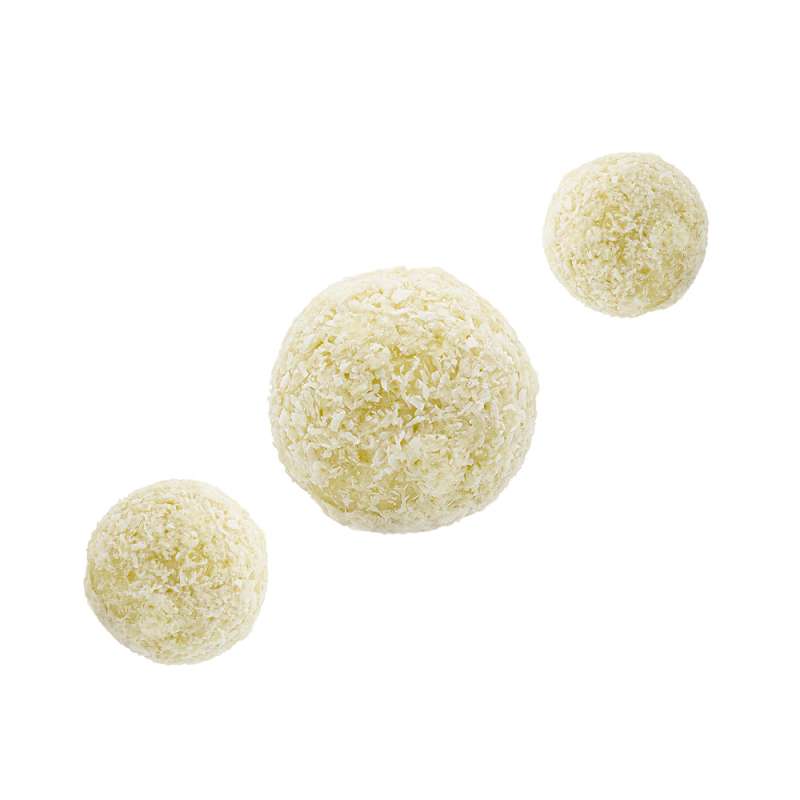 Laissez-vous tenter par la Boule de Neige : un chocolat blanc raffiné, renfermant une crème onctueuse à la noix de coco, pour une pause gourmande pendant que les flocons tombent.