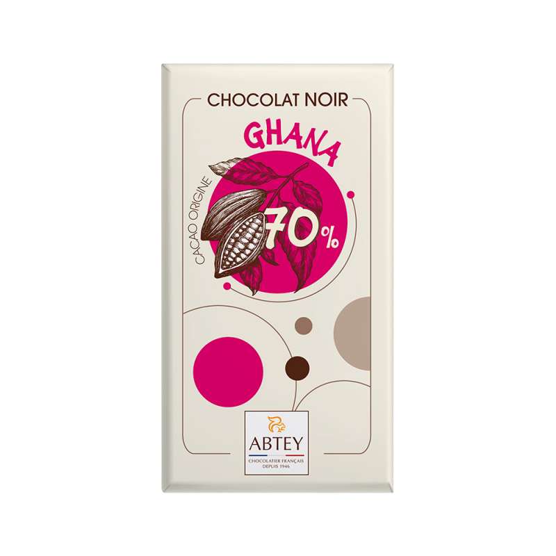 Ingrédients : Pâte de cacao origine Ghana, sucre, émulsifiant : lécithine de soja, arôme naturel de vanille.