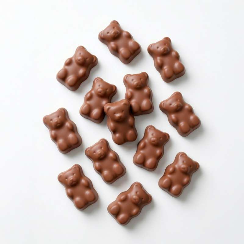 Sucre, Sirop de glucose, Beurre de cacao, Sirop de sucre inverti, Lait écrémé en poudre, Pâte de cacao, Gélatine porcine, Arôme naturel de vanille, Agent d'enrobage : huile de tournesol, cire de carnauba. Chocolat au lait 28% de cacao. Peut contenir des traces d'oeufs, sésame. et fruits à coque.