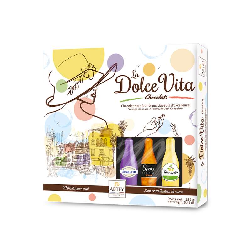Besoin d'évasion? Le casier La Dolce Vita séduira les amateurs d'Italie ! Un Limoncello, un Spritz ou bien un Amaretto ? Plus besoin de se décider ils sont tous présents dans ce coffret d'exception et sont proposées dans une coque de chocolat noir, sans cristallisation de sucre.