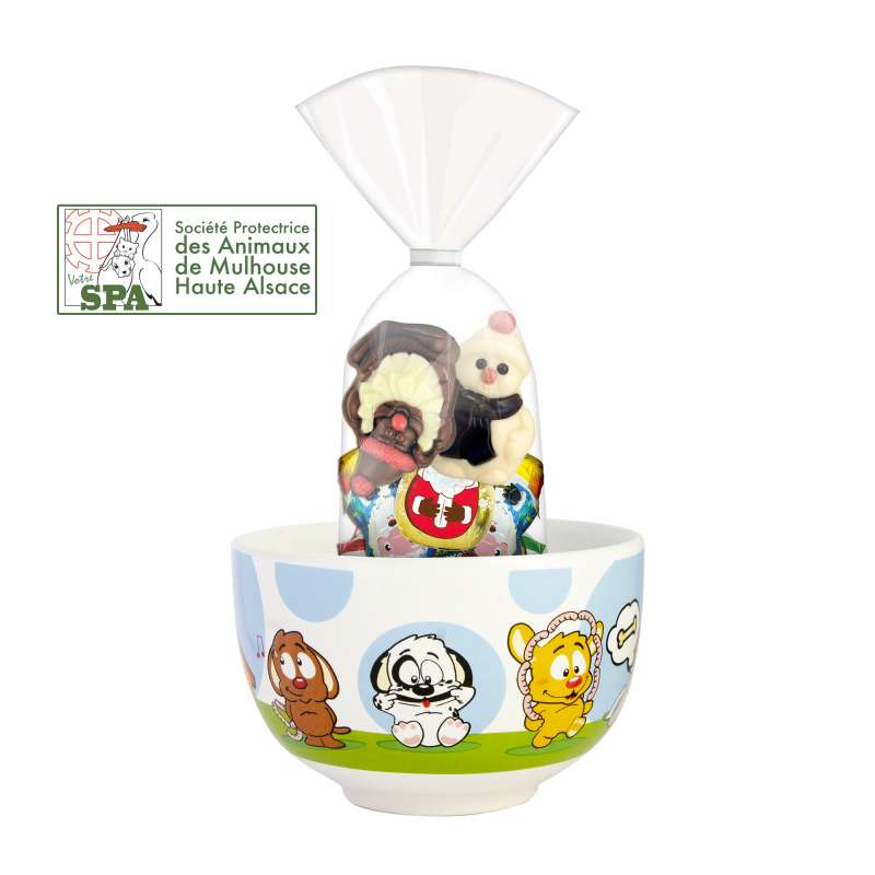 Offrez-vous un moment gourmand avec notre Bol Solidaire de Noël ! Décoré d’adorables motifs de chiens, il renferme un grand assortiment de chocolats festifs pour célébrer les fêtes avec douceur. En plus de régaler vos proches, chaque bol vendu reverse 1€ à la SPA pour soutenir nos amis à quatre pattes.